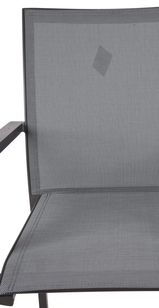Die acht Stapelstühle RANA sind speziell für platzsparende Lagerung konzipiert und verfügen über ein pulverbeschichtetes dunkelgraues Aluminiumgestell und Sitzflächen aus mittelgrauem Kunststoffgewebe mit einem 2x2-Muster. Dieses Gestell ist leicht und dennoch stabil und sorgt für Langlebigkeit. Die Stühle können einfach gestapelt und gelagert werden, wenn sie nicht in Gebrauch sind.
