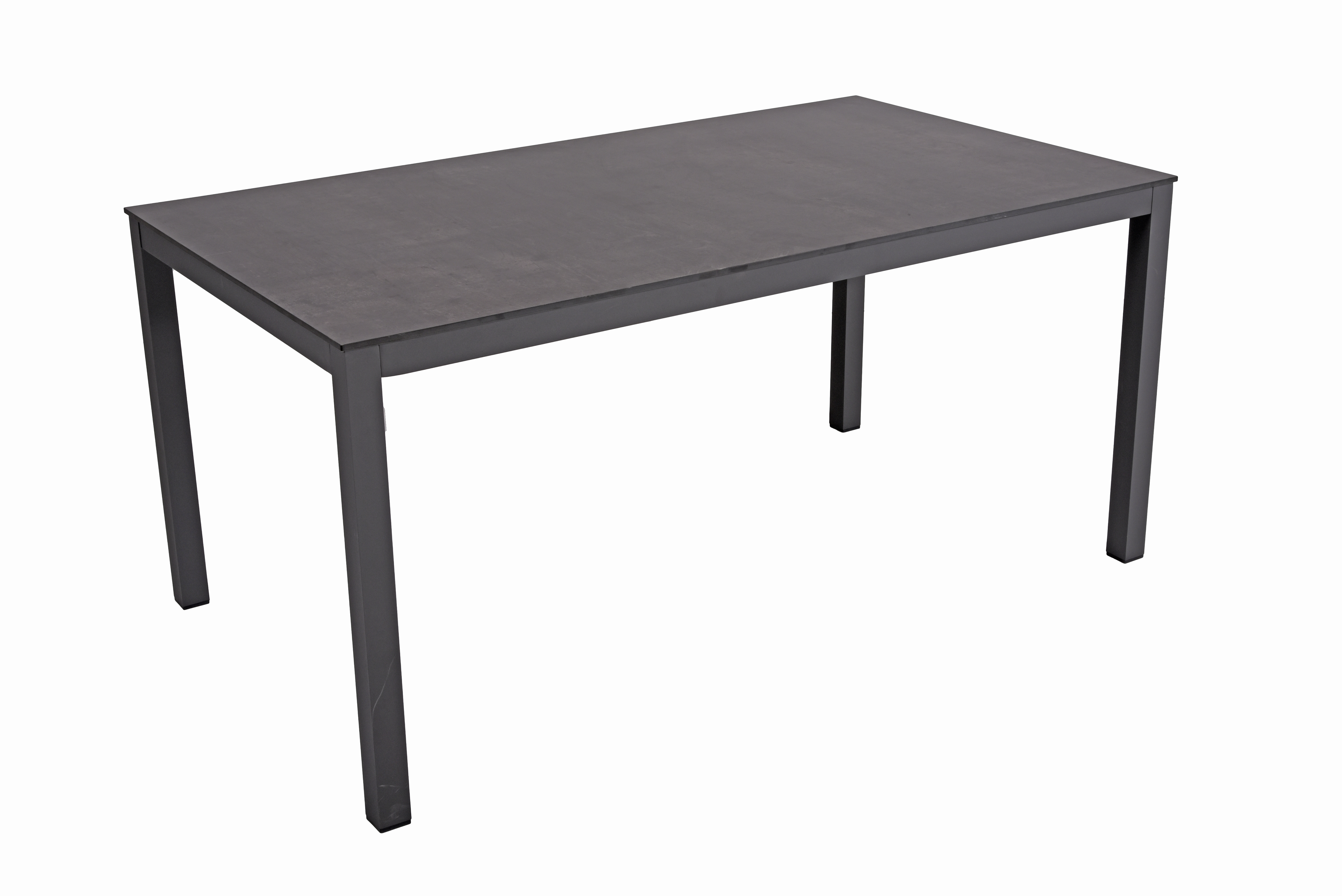 Der Tisch SOPHIA besteht aus Aluminium mit einer Kunststoff High-Pressure Laminate (HPL) Tischplatte in einem Anthrazit-Farbton. Diese Materialkombination verleiht dem Tisch nicht nur eine moderne Ästhetik, sondern auch Stabilität und Wetterbeständigkeit.