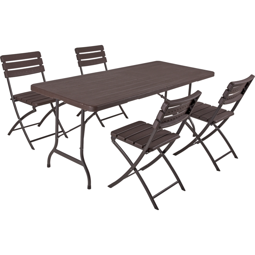 Die Tischgruppe ist äußerst praktisch, da sie leicht zu reinigen und zu pflegen ist. Darüber hinaus sind sowohl die Stühle als auch der Tisch klappbar, was die Aufbewahrung und den Transport erleichtert. Die TABORA 5-tlg. Tischgruppe ist die ideale Wahl für Menschen, die eine Kombination aus Stil, Komfort und Haltbarkeit suchen, um gemeinsame Mahlzeiten oder Momente der Entspannung zu genießen