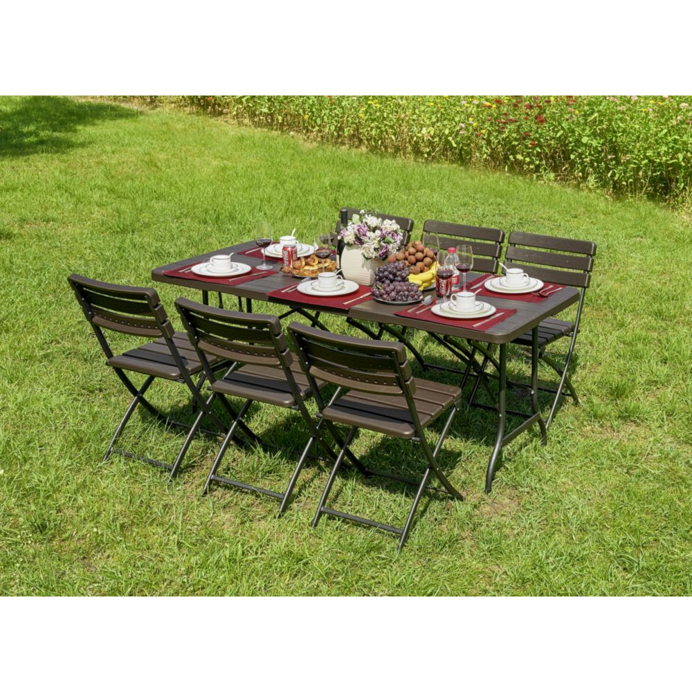 Die Tischgruppe ist äußerst praktisch, da sie leicht zu reinigen und zu pflegen ist. Darüber hinaus sind sowohl die Stühle als auch der Tisch klappbar, was die Aufbewahrung und den Transport erleichtert. Die TABORA 7-tlg. Tischgruppe ist die ideale Wahl für Menschen, die eine Kombination aus Stil, Komfort und Haltbarkeit suchen, um gemeinsame Mahlzeiten oder Momente der Entspannung zu genießen