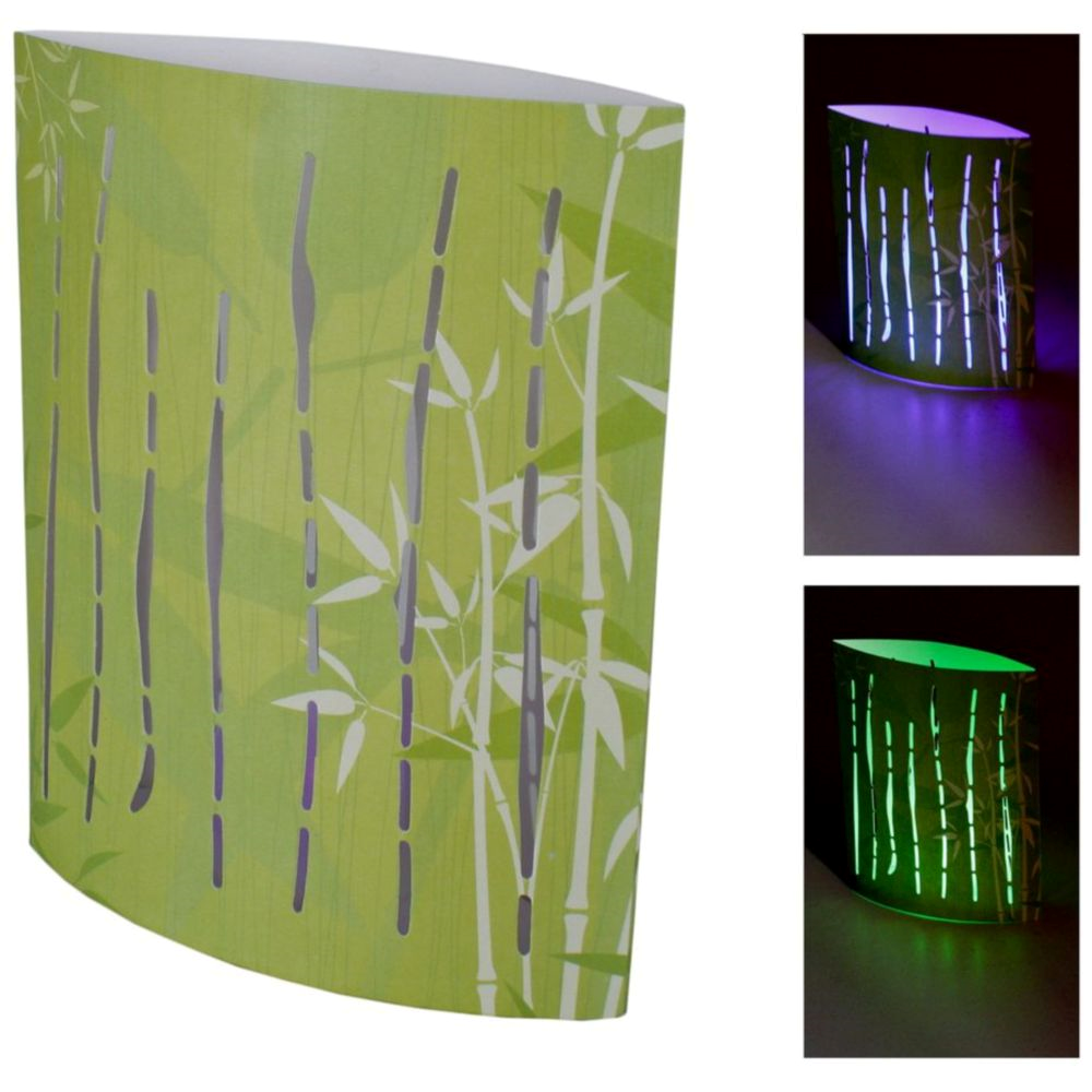 Die Tischleuchte mit dem Bambusmotiv ist eine einzigartige und dekorative Beleuchtungslösung, die Ihrem Raum einen Hauch von Natur und Exotik verleiht. Sie ist aus Kunststoff gefertigt und mit einem attraktiven grünen und weißen Bambusmuster versehen.