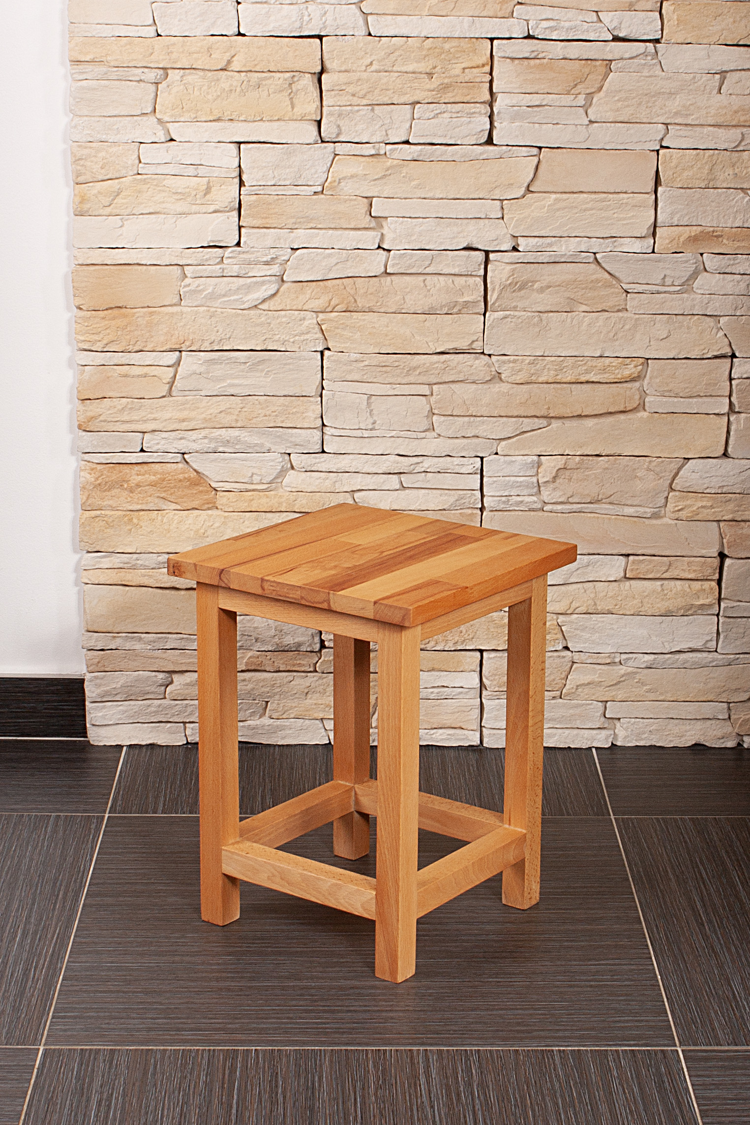 Eine robuste Stabilität erhält der Universalhocker durch eine keilgezinkte Verarbeitung.