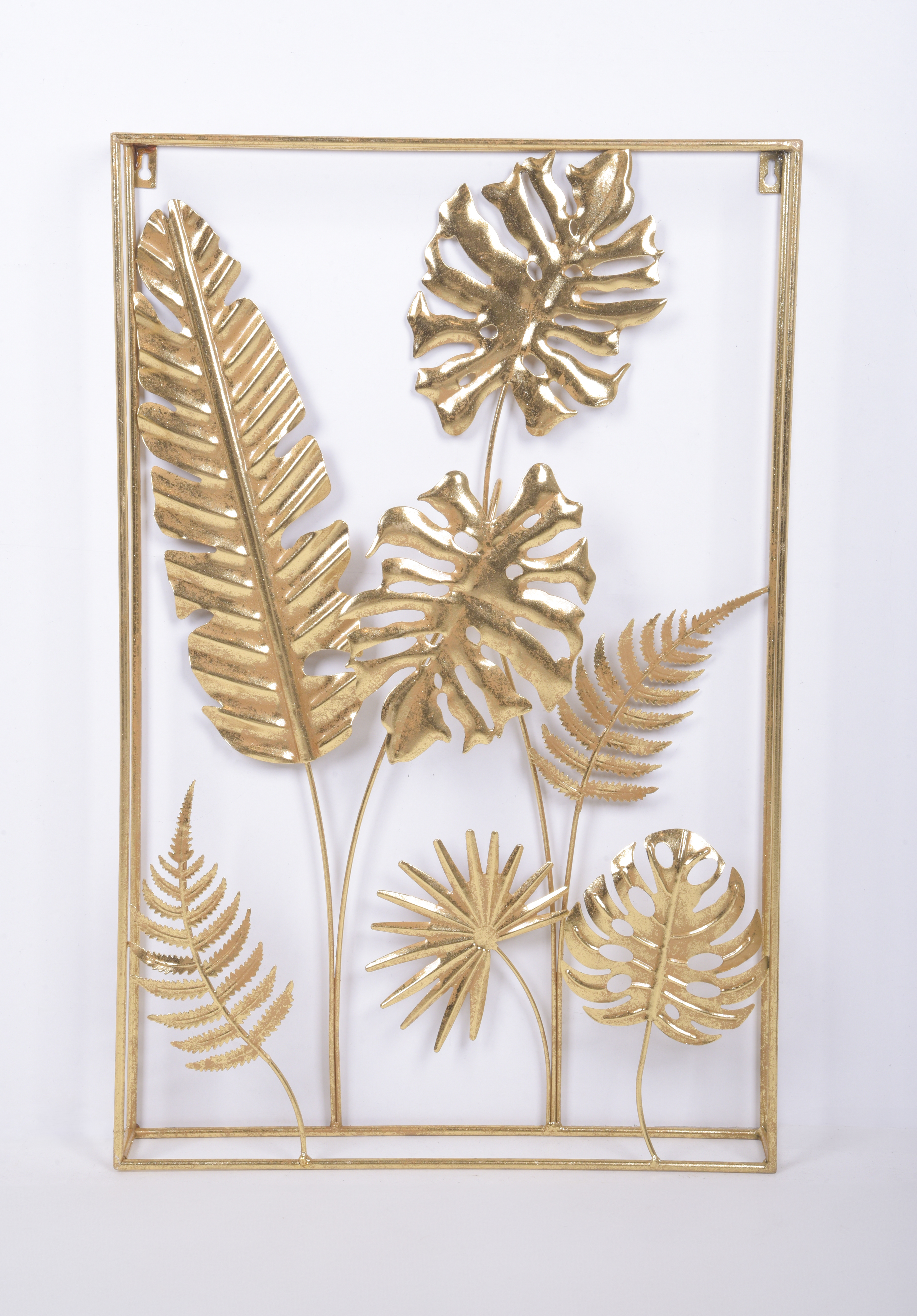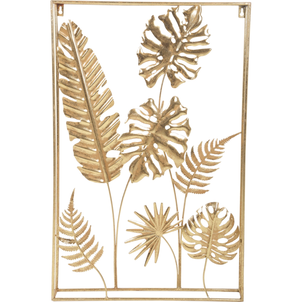 Die JUNGLE Wanddekoration besteht aus mehreren kunstvoll gestalteten Elementen, die harmonisch miteinander verbunden sind und an Ihrer Wand angebracht werden können. Das goldene Metall verleiht ihr eine glamouröse und zeitgemäße Ästhetik.