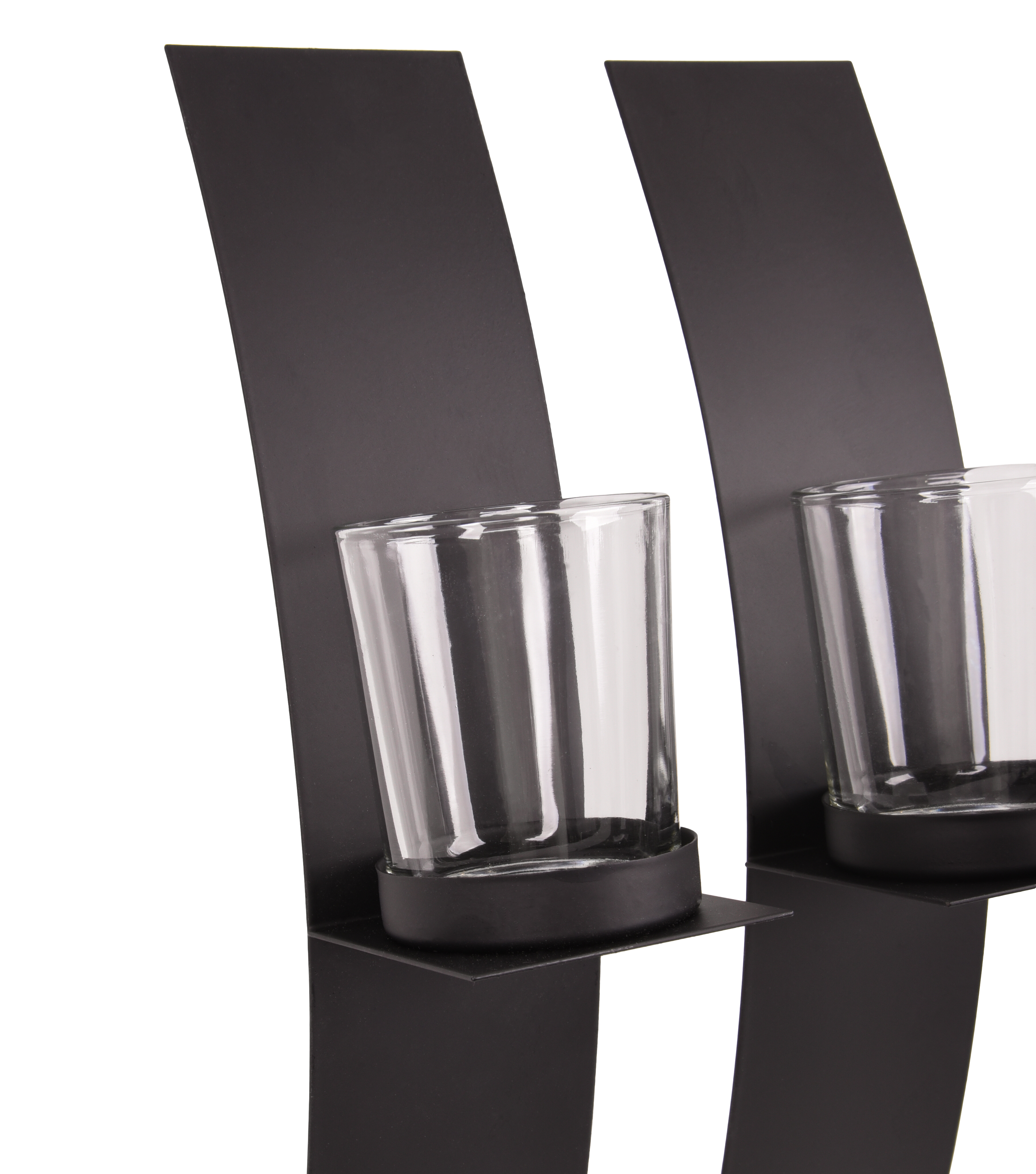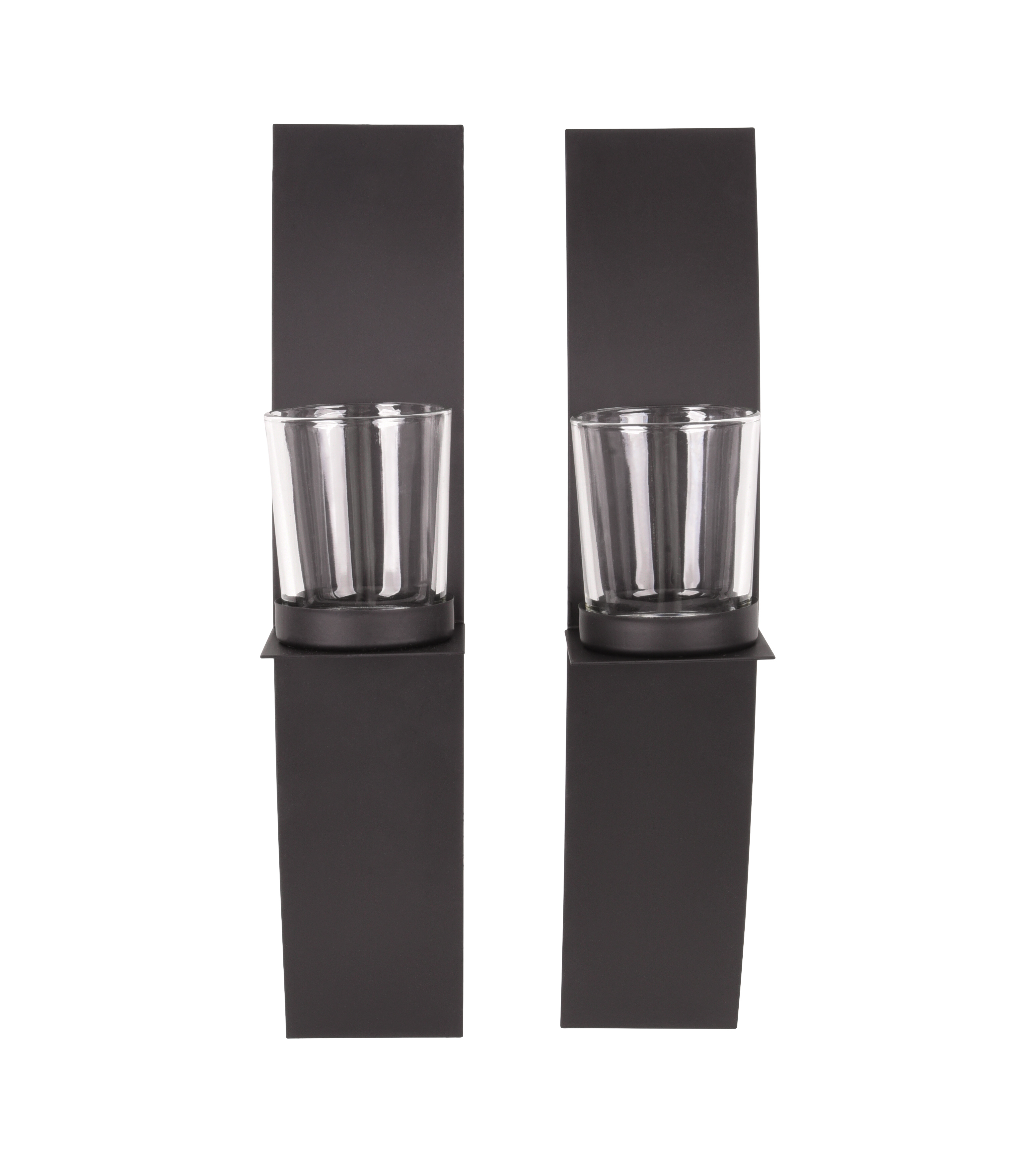 Unser Wandkerzenhalter 2er Set aus matt schwarz lackiertem Metall, komplett mit Glasbehältern, ist eine elegante Möglichkeit, Ihren Wohnraum zu verschönern. Diese Kerzenhalter sind speziell für den Einsatz von Kerzen konzipiert und bieten einen stilvollen Rahmen für Ihre Lieblingskerzen, die jedoch nicht im Lieferumfang enthalten sind.