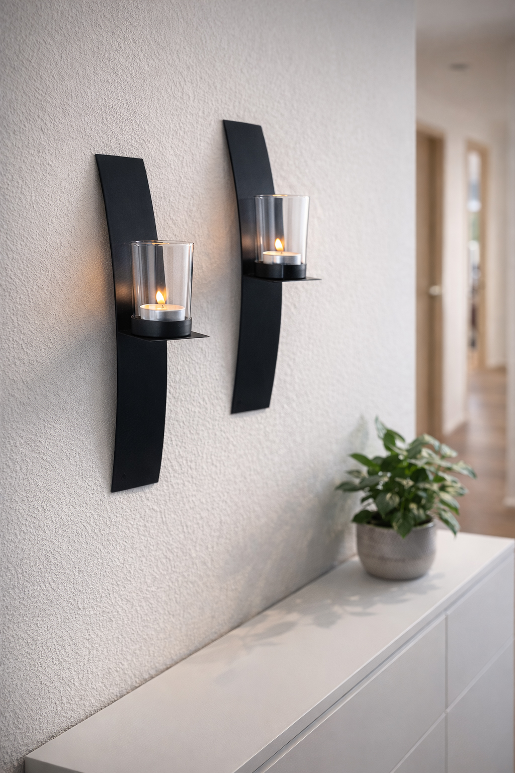 Mit ihrer robusten Konstruktion und den klaren Linien sind diese Wandkerzenhalter sowohl funktional als auch ästhetisch ansprechend. Sie eignen sich perfekt für den Einsatz im Wohnzimmer, im Flur oder im Essbereich und bieten eine elegante Möglichkeit, Ihre Räume zu beleuchten und zu dekorieren.