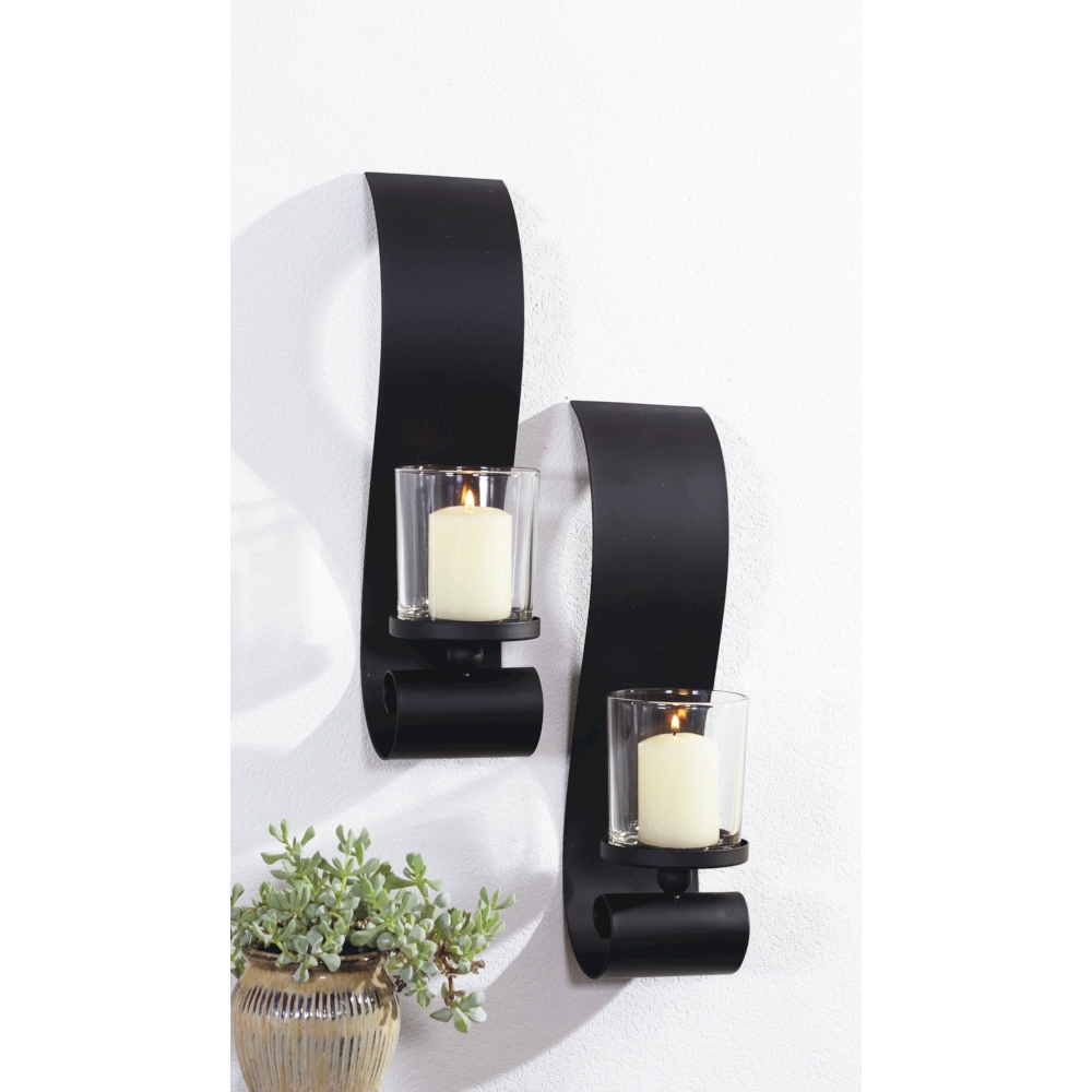 Dies stilvolle 2er-Set Wandkerzenhalter aus schwarzem Metall und Glas ist eine elegante und praktische Ergänzung für Ihre Inneneinrichtung. Die schlichte, moderne Gestaltung der Halter ermöglicht es, sie in verschiedene Einrichtungsstile zu integrieren.